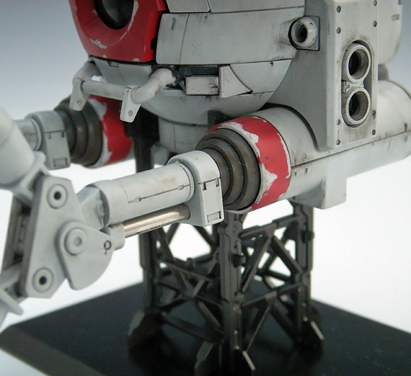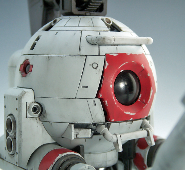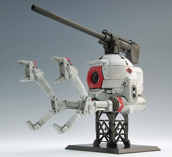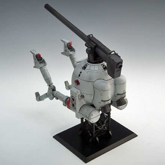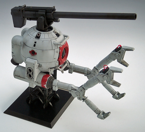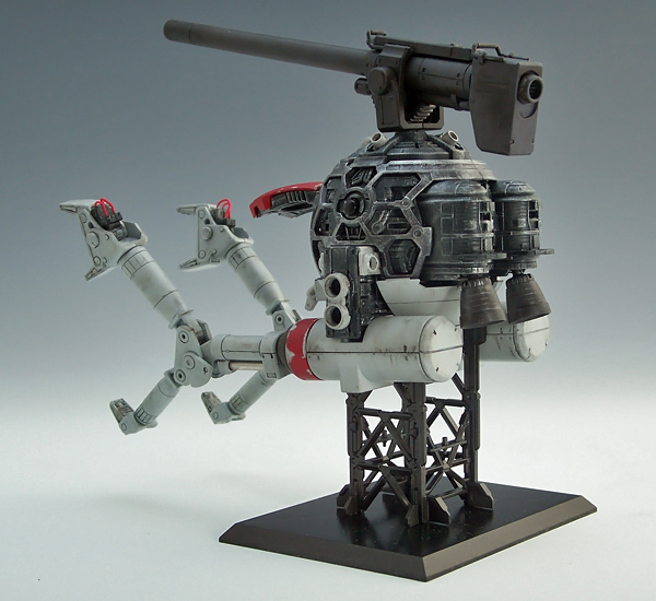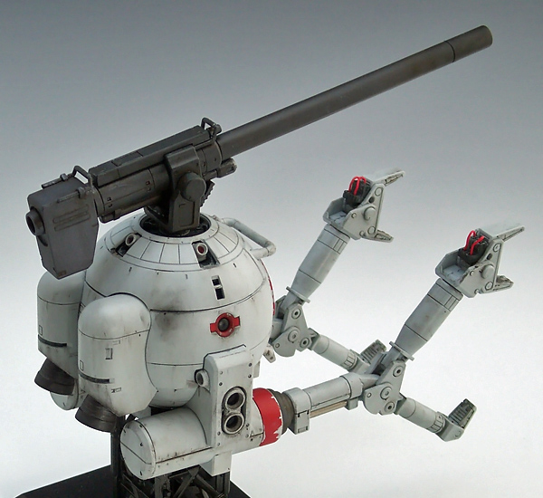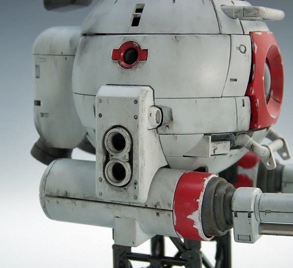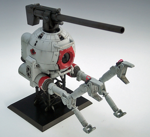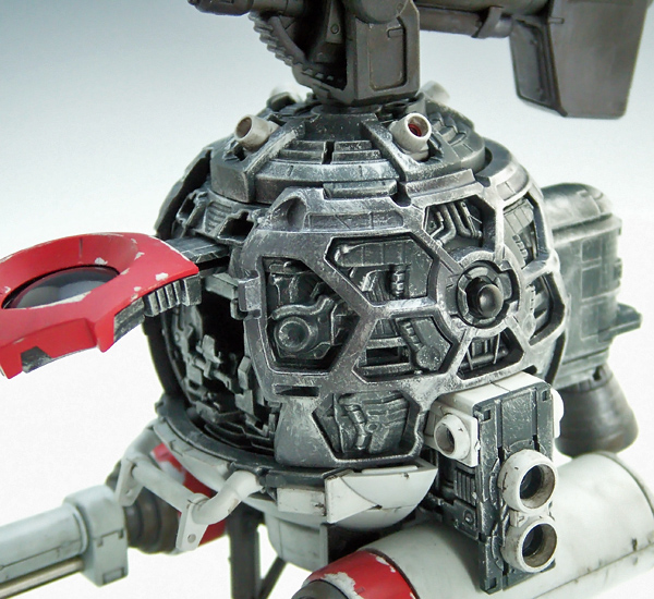 MG MOBILE POD BALL "Ver.ka" [コメント] 作品を作るにあたってHobby HAPAN 2005年5月号に掲載されている野田啓之氏のボールを参考に製作しました。 キットの出来はすばらしく目消しと後ハメ加工は1ヶ所やるのみですみ、大変作りやすかったです。 今回初めてのウェザリングに挑戦し、色々と勉強になりました。 ウェザリングは、エナメルのフラットブラックとレッドブラウンを混ぜたものでウォッシングを行い、さらにレッドブラウンを多めに混ぜたものでウォッシングを行いました。それが終わったらエッジの部分を中心にドライブラシをかけ最後にバーニアやキャノンを中心に黒のパステルをかけました。内部フレームはシルバーでドライブラシをかけ、汚れを目立たせたかったのでデカールは1枚も貼りませんでした。 キットが大変作りやく、素組みのため今回は最短の5日間で完成し満足のいく出来になりました。 [改修] 腕部 アーム部分の後ハメ加工 [塗装] 本体 ライトグレー 赤 モンザレッド 内部フレーム ジャーマングレー+ニュートラルグレー バーニア、キャノン メタリックカラーアイアン ウェザリング ウォッシング(フラットブラック+レッドブラウン)→ウォッシング(フラットブラック+レッドブラウン)→チョロハゲ(ライトグレー+ホワイト)→ドライブラシ(フラットブラック)→パステル(スス) 完成日2006/05/05