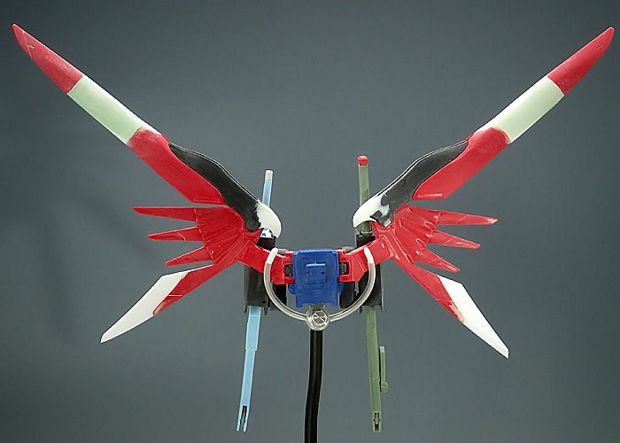 大羽と小羽をそれぞれ3cm延長させ、大羽の黒パーツの先端をエポパテにて形状変化。